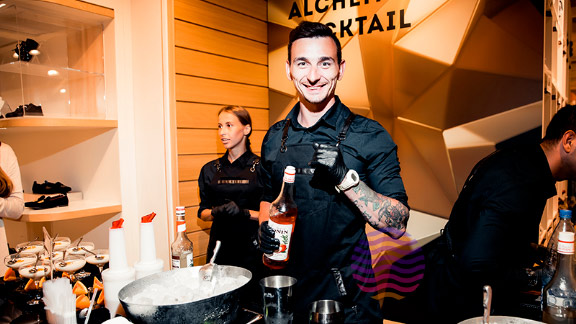 Мы превратим банальное мероприятие в настоящее шоу. Опытные бармены организуют нестандартную подачу коктейлей, помогут гостям раскрепоститься и поймать волну веселья. Отбросьте стеснение и неловкость. Вы оказались в команде единомышленников и можете повеселиться от души! Наслаждайтесь моментом!